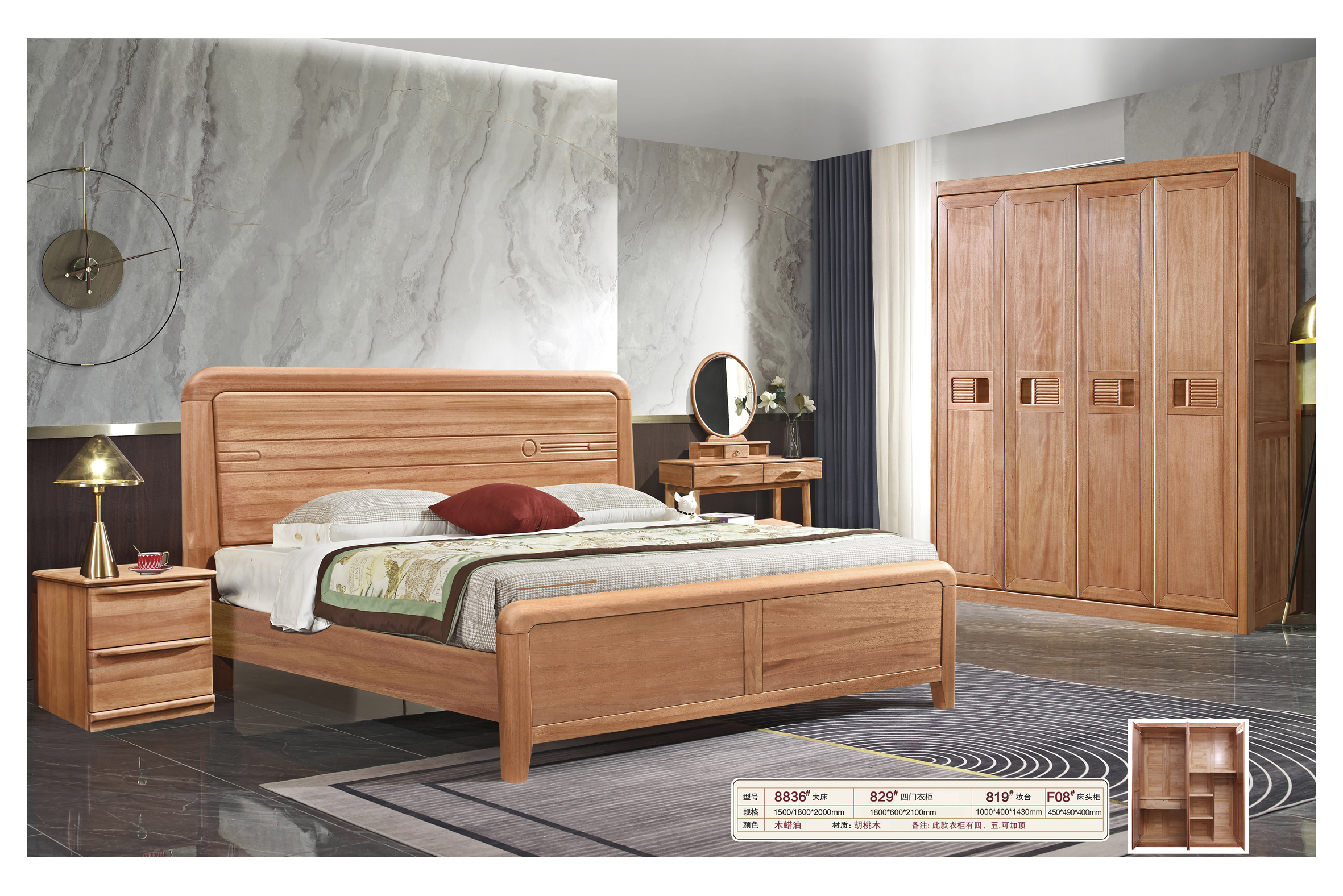 铂悦-8836#胡桃木床木蜡油