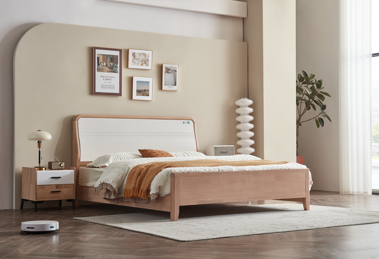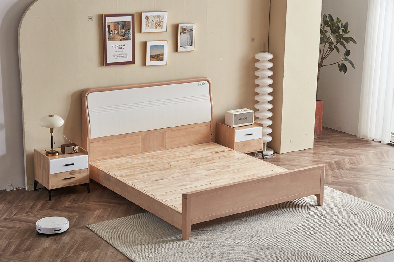 橡胶木/橡胶木做黑胡桃画纹工艺 配置:橡木满铺床板