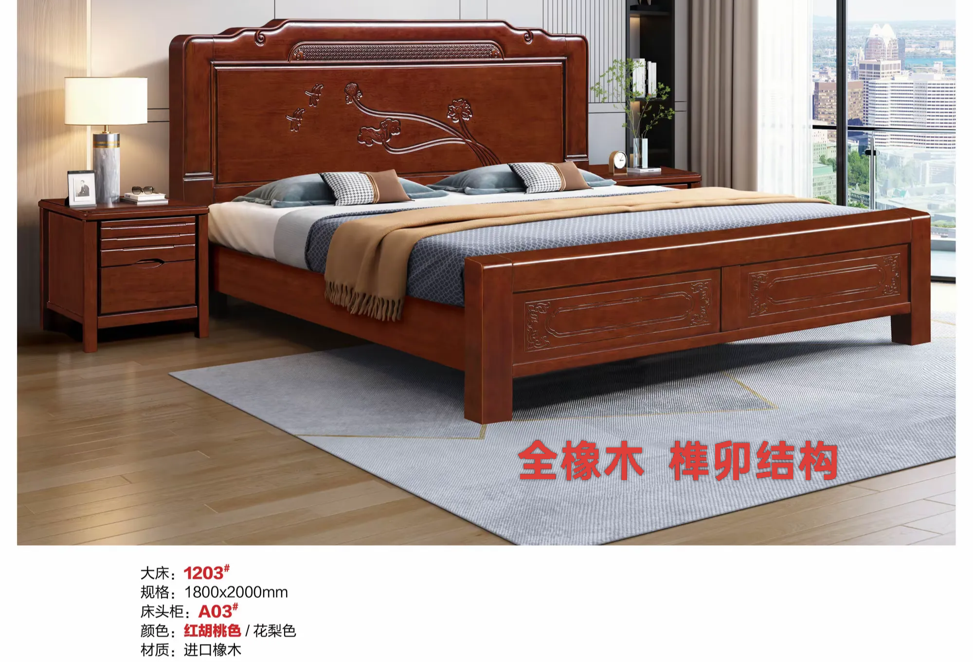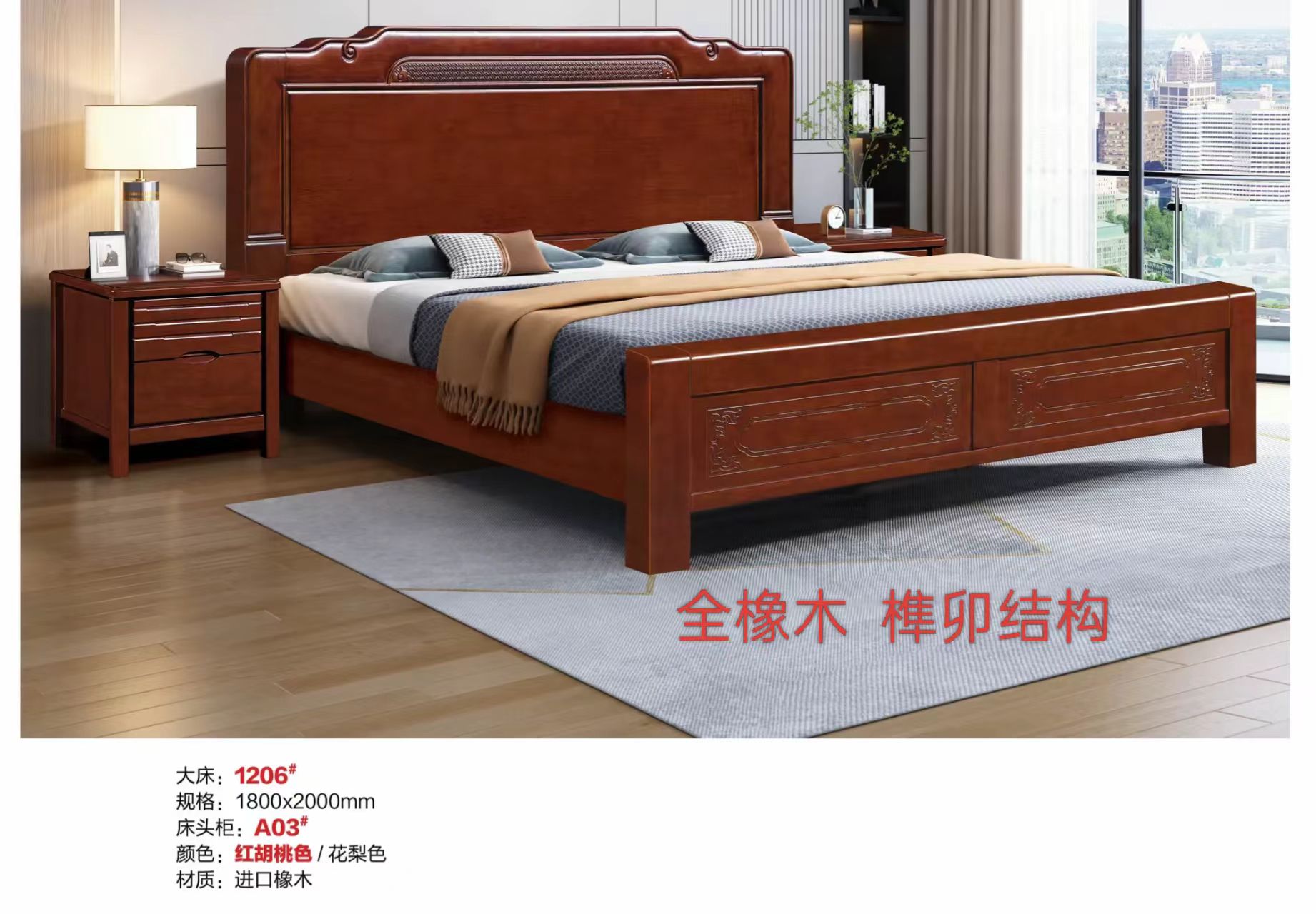 抗兴福强-檀木,橡木榫卯结构床